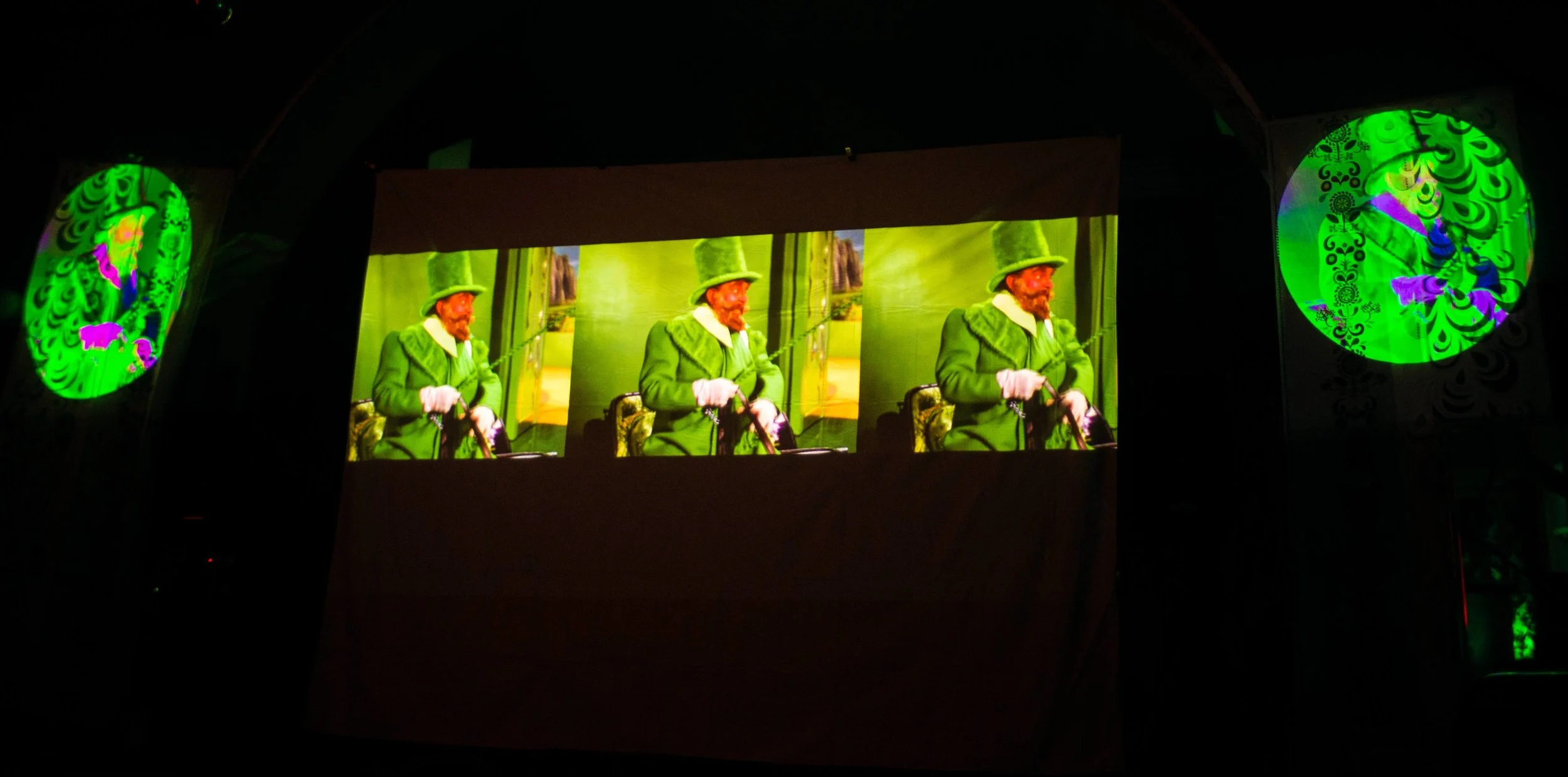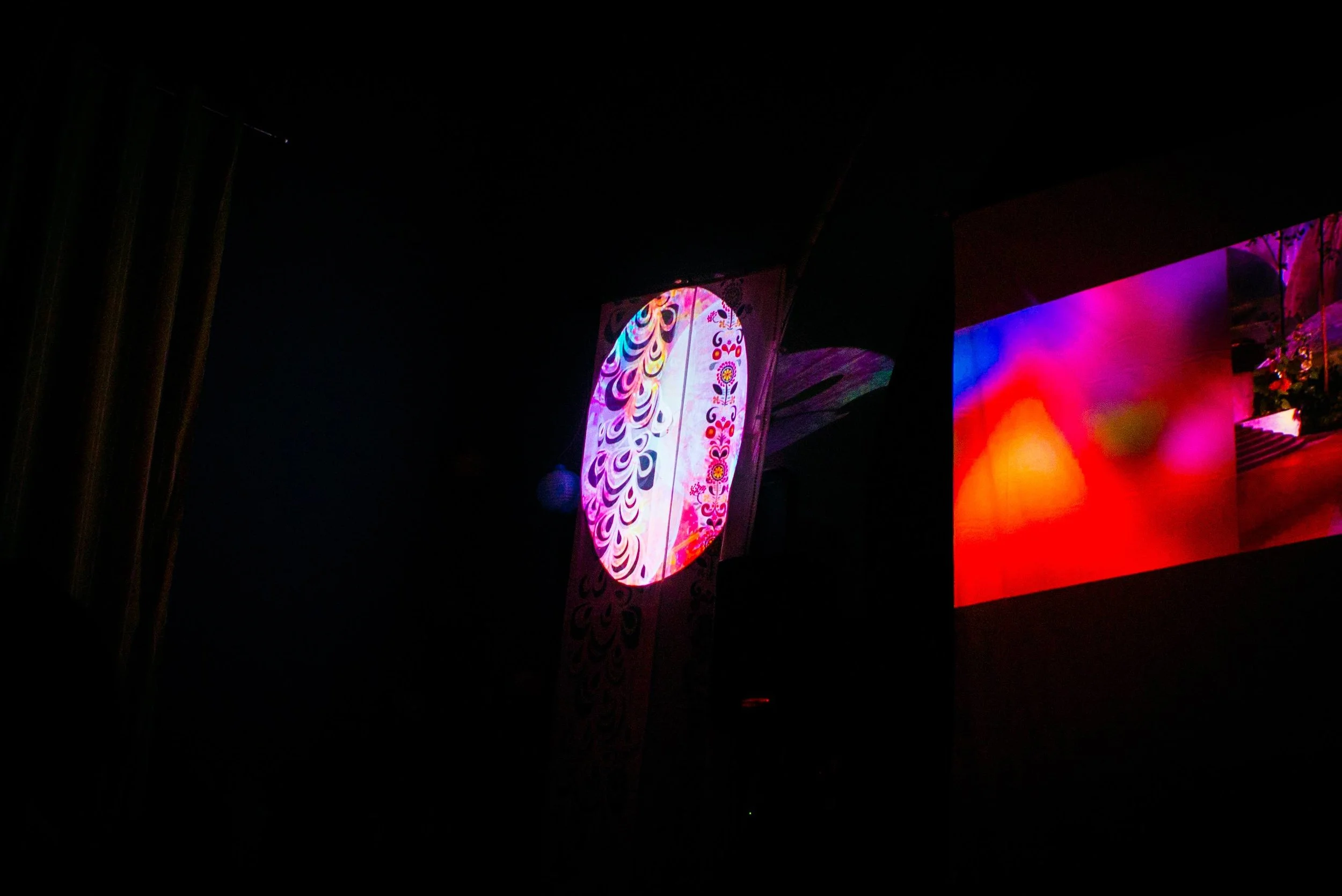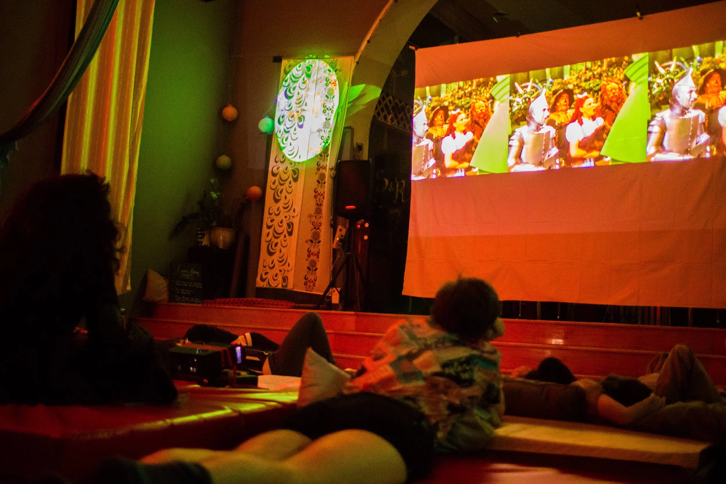 RAINBOW was the classic Dark Side of the Rainbow screening hosted inside a repurposed aerialist onion domed church in collaboration with Voler - Thieves of Flight. With a custom created vision of Dark Side of the Rainbow we created a psychedelic inspired experience by placing the film side by side overlaid with various effects to amplify the mind melting synesthesia accompanied by 2 other colorful projections on each side. Special pre-show treat was provided by Voler - Thieves of Flight students preformed a Oz inspired trapeze performance.