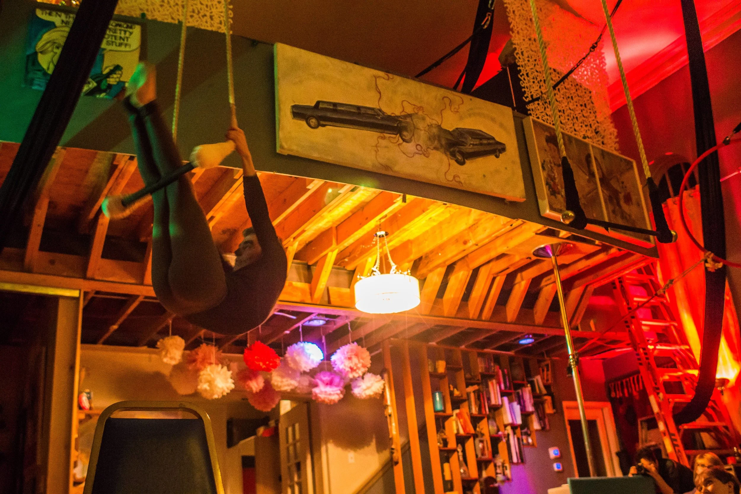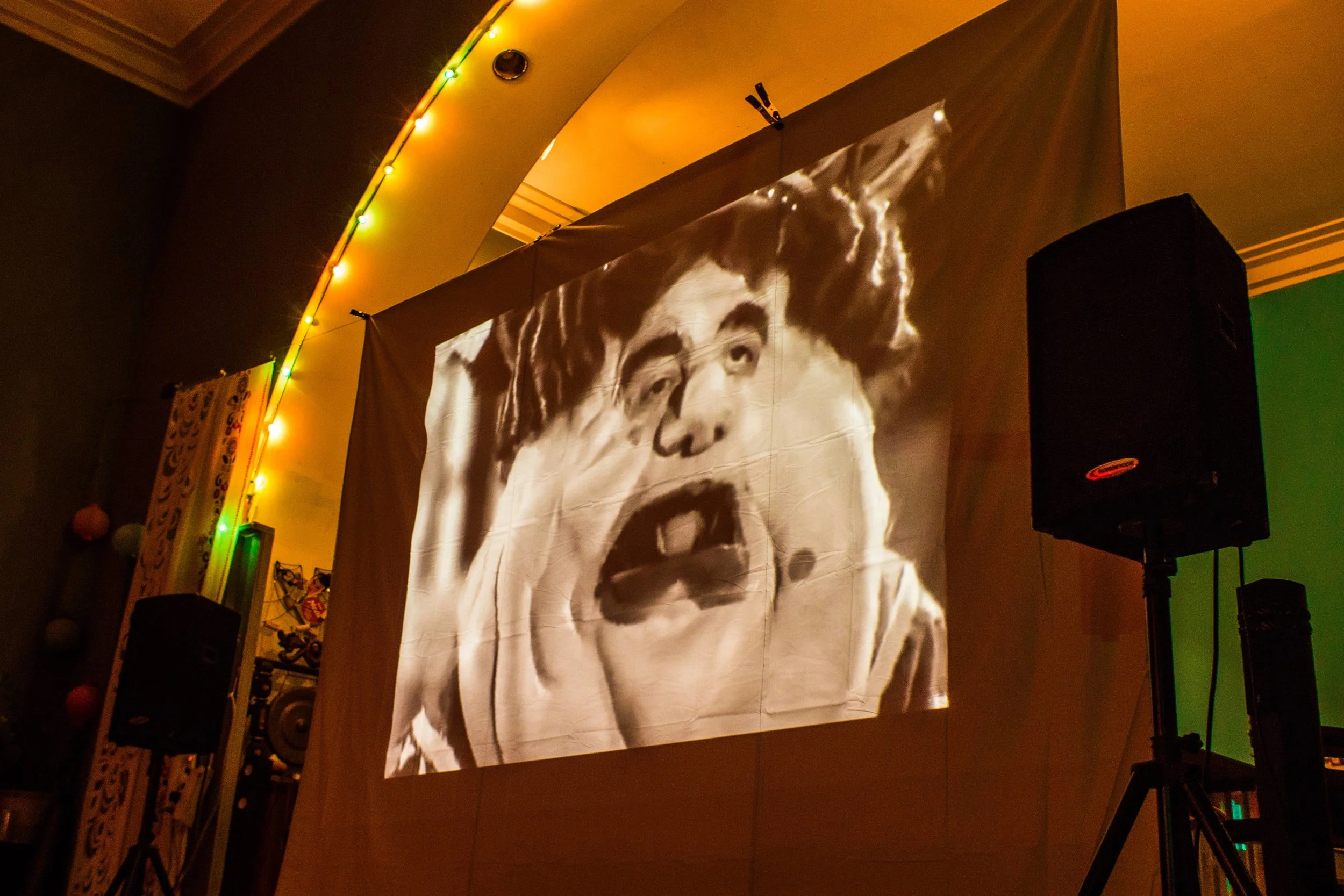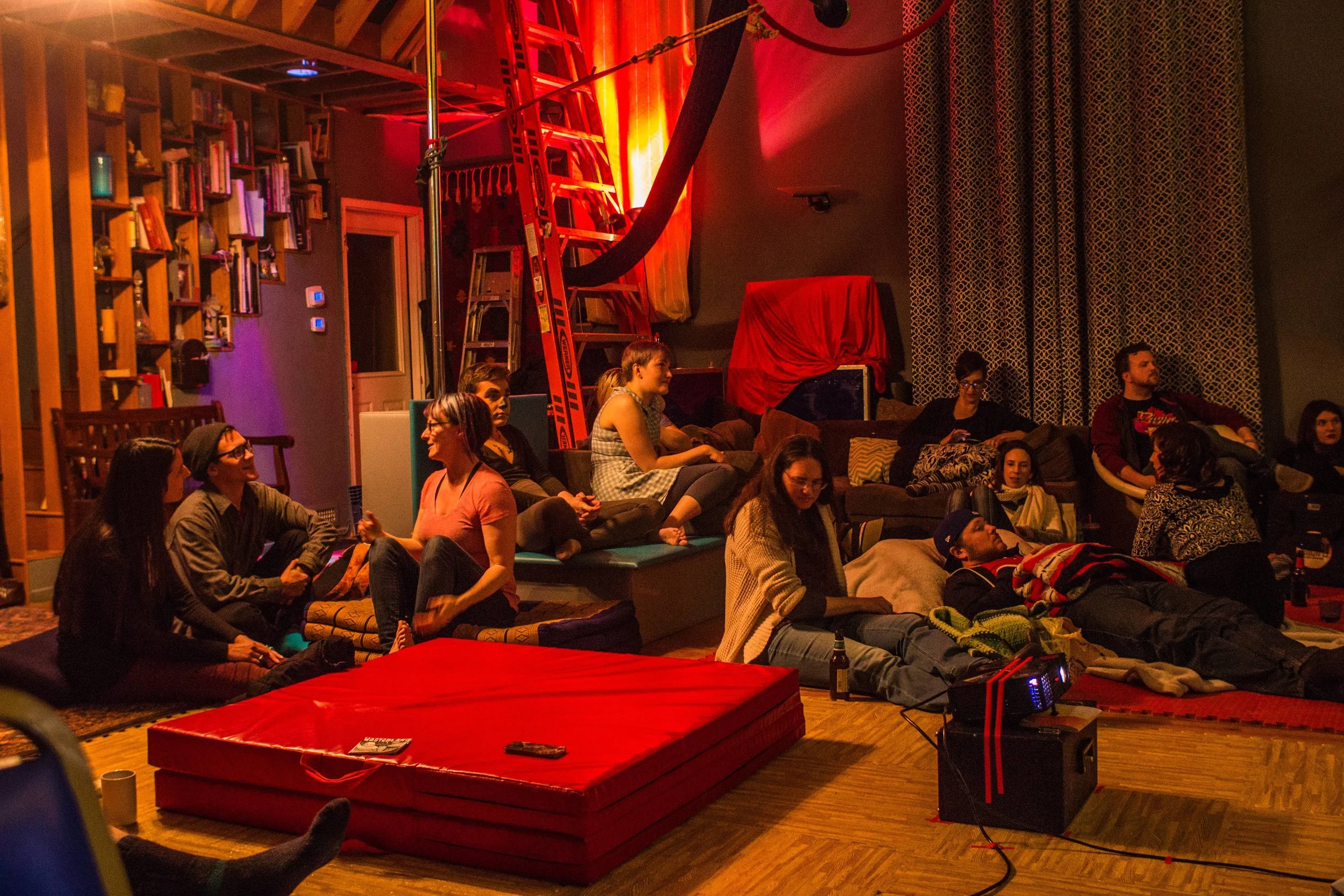 RAINBOW was the classic Dark Side of the Rainbow screening hosted inside a repurposed aerialist onion domed church in collaboration with Voler - Thieves of Flight. With a custom created vision of Dark Side of the Rainbow we created a psychedelic inspired experience by placing the film side by side overlaid with various effects to amplify the mind melting synesthesia accompanied by 2 other colorful projections on each side. Special pre-show treat was provided by Voler - Thieves of Flight students preformed a Oz inspired trapeze performance.